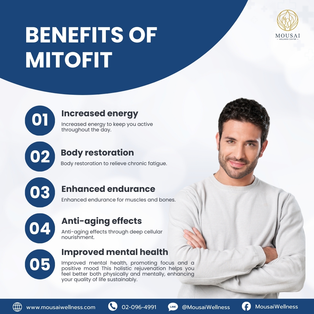 Revitalize your life with MitoFitBy Mousai Wellness / กรกฎาคม 23, 2025 Feeling drained from long workdays, intense workouts, or lingering health issues? MitoFit IV Therapy is here to recharge you from the inside out. Packed with a powerful blend of amino acids, vitamins, and essential nutrients: Boost your energy levelsRestore your health balanceEnhance muscle and bone strengthSlow down agingImprove mental clarity and mood Perfect for busy professionals, fitness enthusiasts, older adults wanting to stay youthful, or anyone battling chronic fatigue. Visit us at Mousai Wellness Center, Sukhumvit 39. Take the first step towards a healthier, more vibrant you today! Mousai Wellness Center Location: https://maps.app.goo.gl/5upfoxwpdsg9hVNx5Line: @MousaiWellnessmousaiwellness.com02-0964991, 061-8941881 #MitoFit #RechargeYourLife #WellnessCare #MitoFit #IVTherapy #EnergyBoost #AntiAgingTreatment #WellnessJourney #HolisticHealth #ChronicFatigueSolution #IVDripTherapy #HealthRejuvenation #PersonalizedWellness #Mousaiwellness #wellnessbangkok #ชะลอวัย Related posts:เปิดสถิติคนไทยป่วยมะเร็งตับ อันดับ 1This Mother’s Day, give your mom the most meaningful gift𝐅𝐑𝐄𝐄 𝐙𝐢𝐧𝐜 𝟏𝟎 𝐦𝐠 𝐰𝐢𝐭𝐡 𝐄𝐯𝐞𝐫𝐲 𝐈𝐕 𝐃𝐫𝐢𝐩