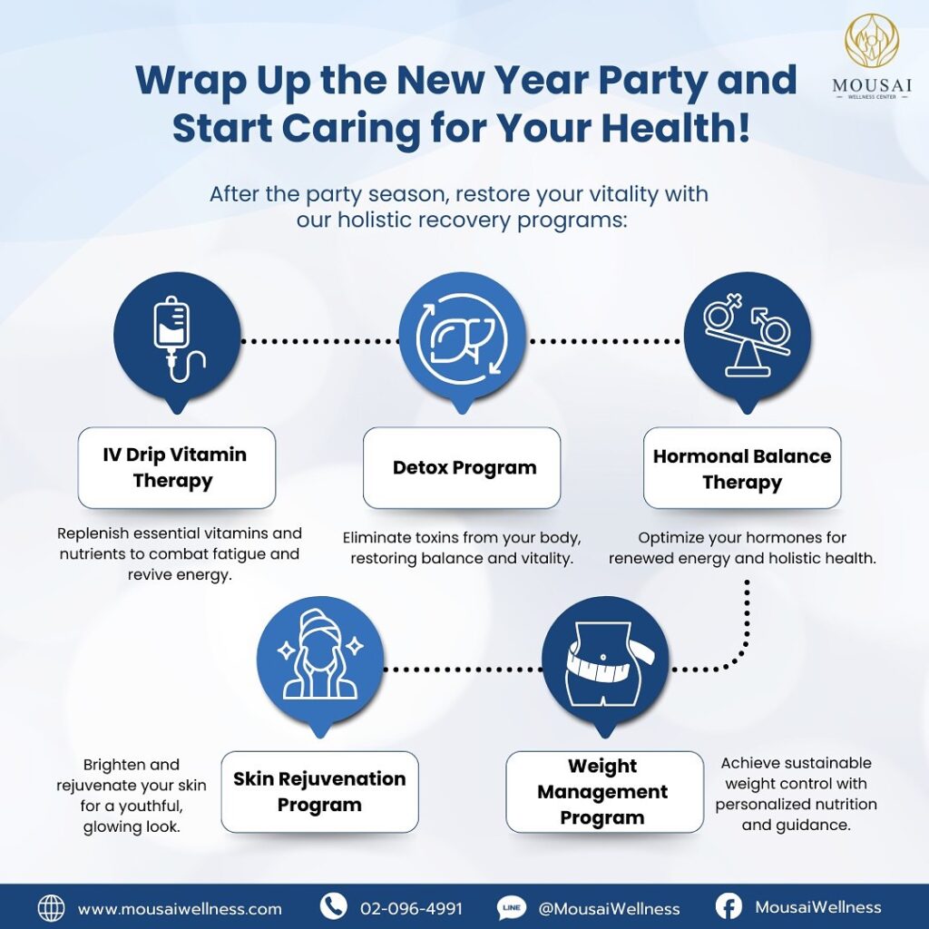 Feeling tired, sluggish, or bloated after the New Year celebrations? Don‘t worry! Mousai Wellness is here to help you bounce back with holistic recovery solutions: